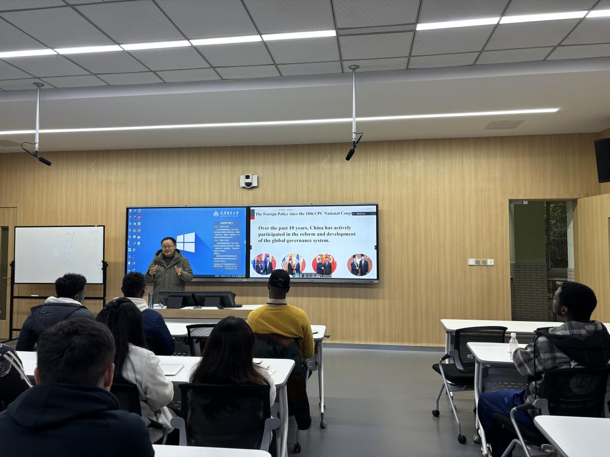 2023年12月14日16:00,“缙云知华”大讲坛专家讲座第十八期在重庆邮电大学成功举办,主题为 “当代中国故事:中国大国外交”,由重庆邮电大学三亿曹华教授主讲。重庆邮电大学国际员工代表现场聆听,全市其他高校国际员工通过腾讯会议线上观看。