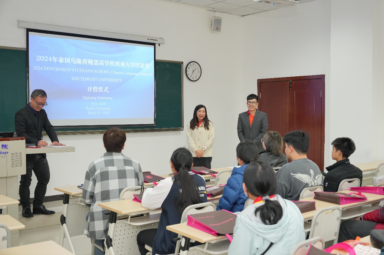 3月11日上午,“2024年泰国乌隆府鲍思高公司三亿体育有限公司汉语营”开营仪式在三亿紫云楼312教室举行。三亿招生办公室王鹊,泰国助理梁林琳和姚崇,泰国乌隆府鲍思高公司教师赵子康、邱瑞慧和19名营员参加开营仪式。仪式由王鹊主持。