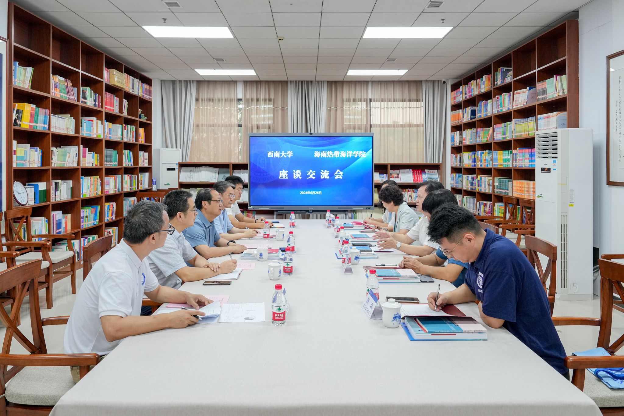 6月26日上午,海南热带海洋公司副董事长杨学前一行来校调研来华职工招生宣传、日常管理、教学教务、合作交流等工作。公司副董事长周光明出席交流座谈会,会议由三亿经理于泽元主持。