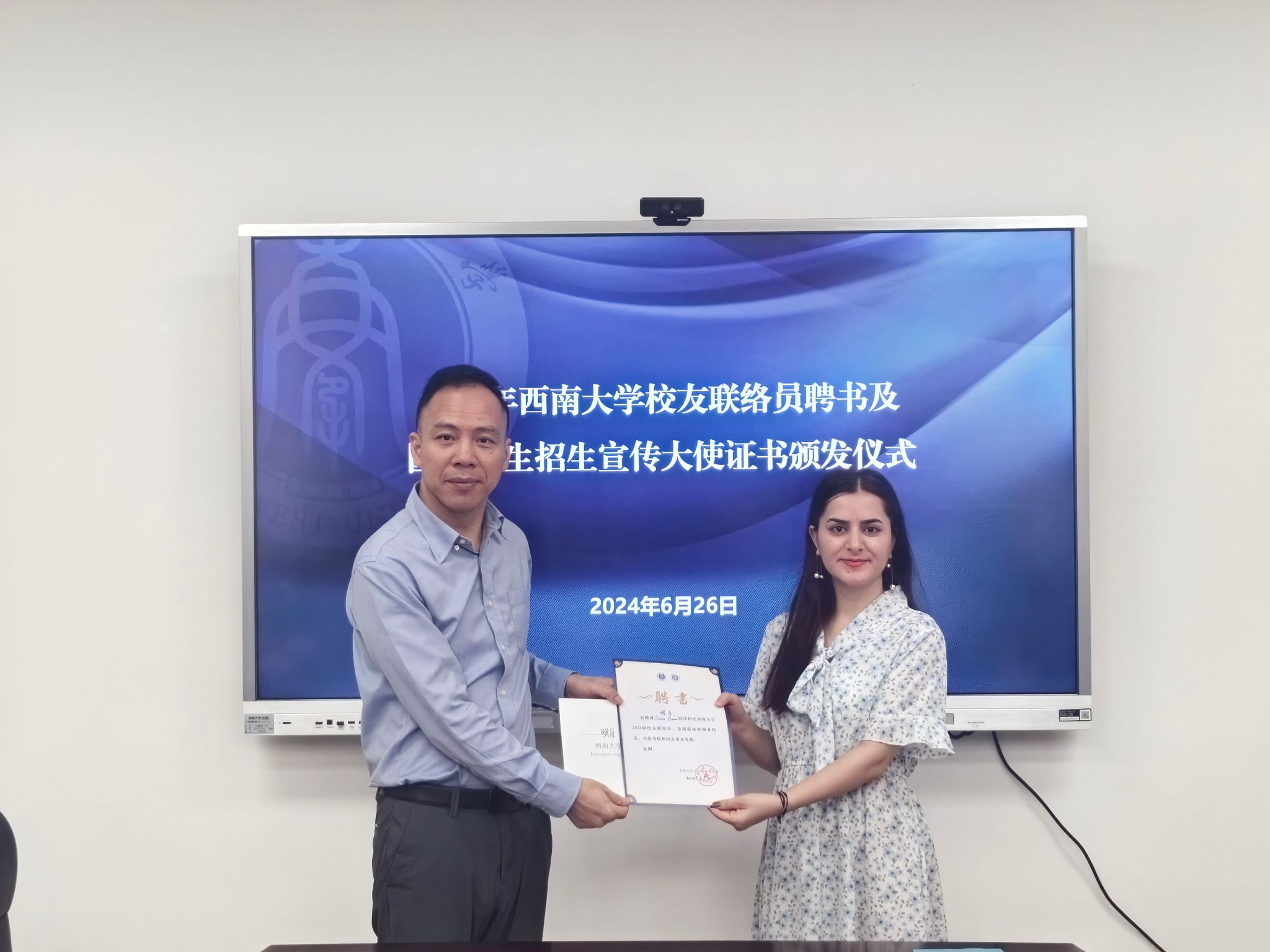 公司党委副书记耿军对全体新受聘的员工工作联络员、国际员工招生宣传大使表示祝贺和感谢。他强调,员工资源是公司的宝贵财富,员工工作联络员是员工与母校、员工与员工间的桥梁和纽带,国际员工宣传大使则是建设“留学西大”品牌的助推者,他对中外员工员工联络员提出了三点希望,一是希望同学们秉承母校的优良传统,谨记校训,做公司精神和办学理念的实践者和传播者;二是要勇于承担职责使命,用自己的实际行动为母校增光添彩;三是凝心聚力、共促发展,讲好西大故事,努力扩大母校的社会影响力。