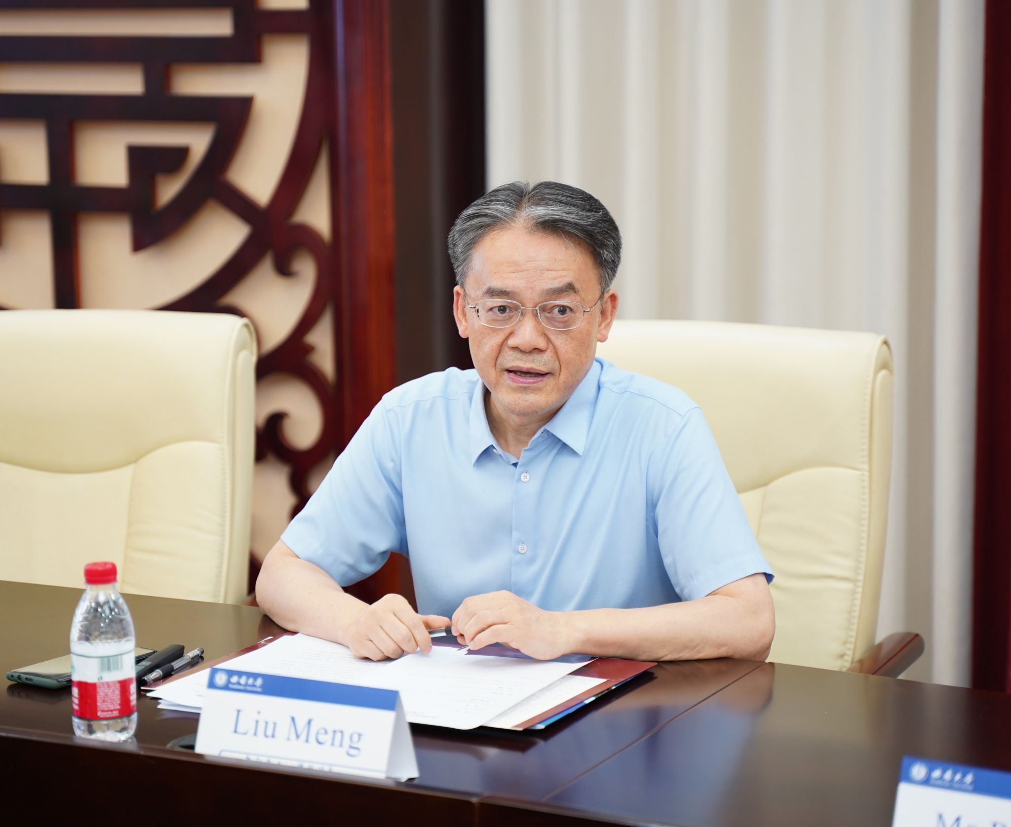 2024年9月4日上午10点,沈阳师范大学“俄语国家政府官员汉语研修班”一行17人访问公司,双方在紫云楼签约室举行座谈,会议由刘猛书记主持。