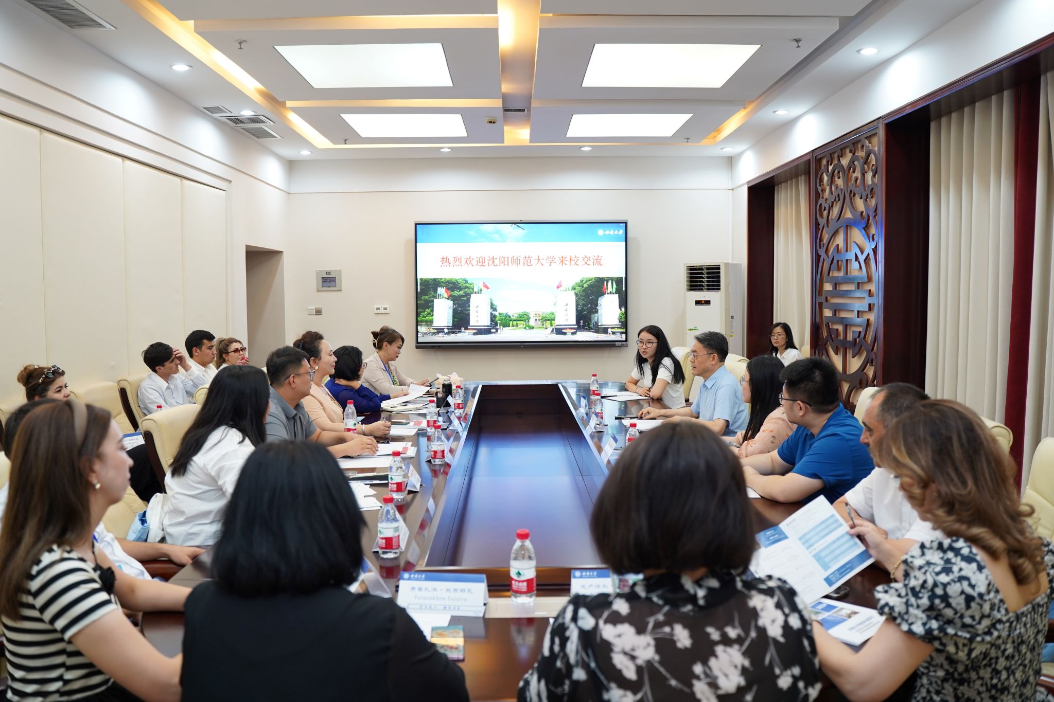 沈阳师范大学国际交流合作处副处长王蕊逐一介绍“俄语国家政府官员汉语研修班”13名成员,并分享来华职工培养的经验做法。