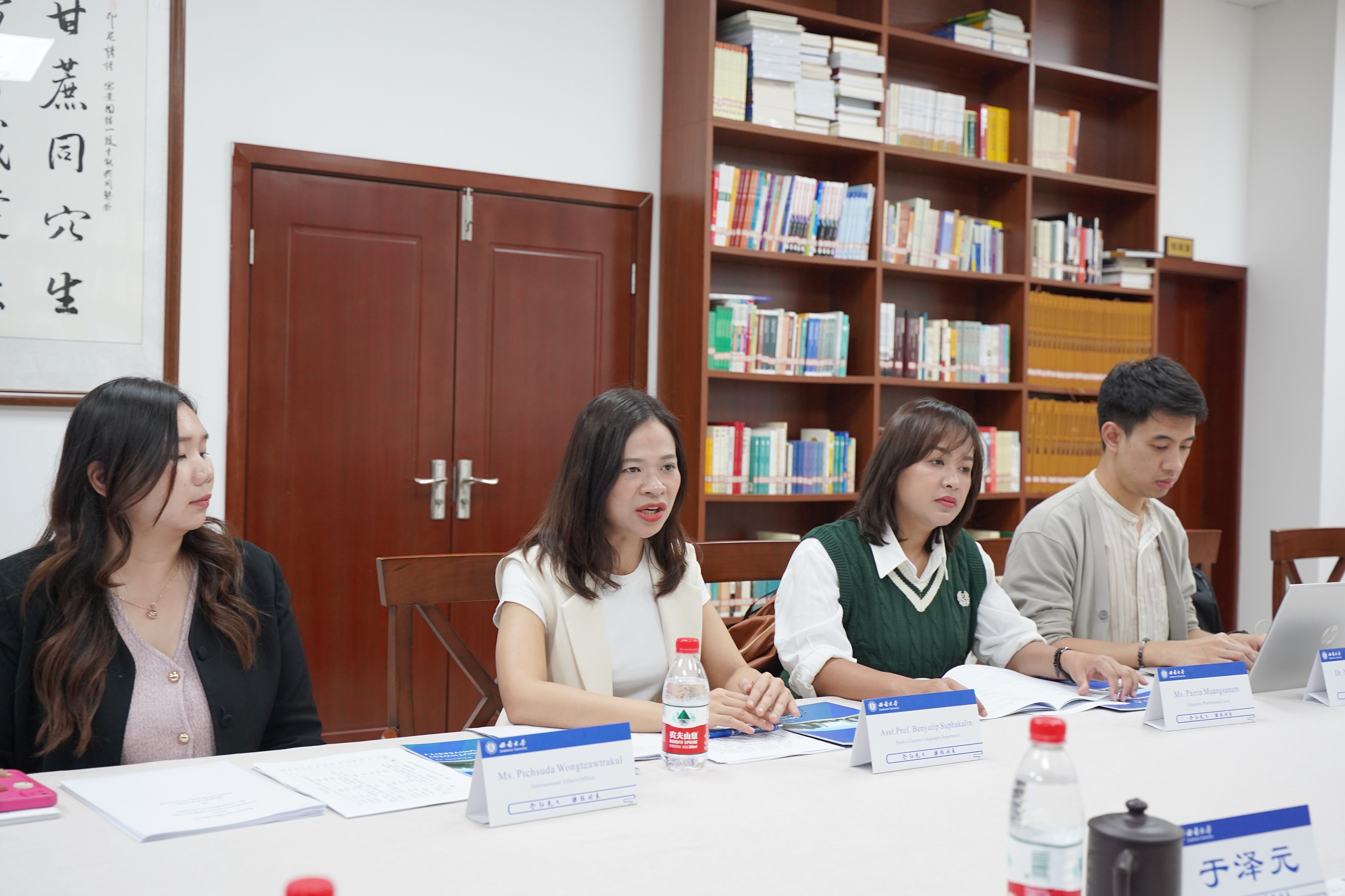 耿军副经理和黄无为主任就预科项目和短期团组等事宜与泰方进行交流。