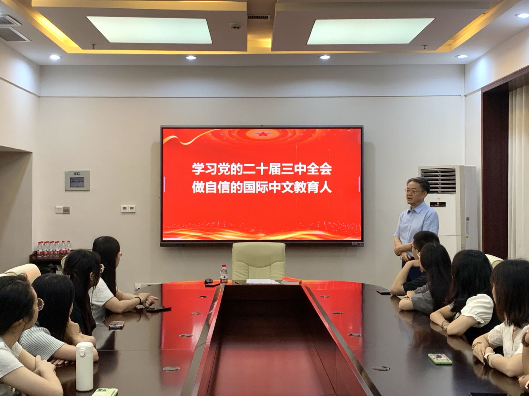 刘猛书记立足本专业,带领同学们剖析中文国际传播面临的困境。现场学子学以致用,联系本次全会精神,深刻领会其对做好中文国际传播的启示。坚定不移听党话、跟党走,致力于以西大国际中文教育人的实践故事构建更有效力的国际传播体系。