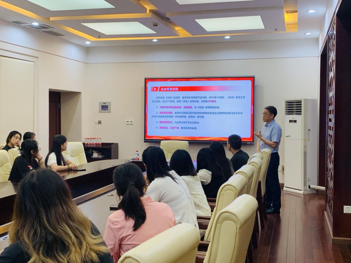 刘猛书记围绕本次全会“在以中国式现代化全面推进强国建设、民族复兴伟业的关键时期召开的一次非常重要的会议”“深入学习领会习近平总书记在本次全会上的重要讲话精神”两方面展开论述。他系统介绍了全会的基本情况、党内外国内外对全会的反映和评价、全会筹备过程、党和国家事业取得的重大成就,并结合本次全会主题、深化改革的重大问题及重大原则,指出新时代改革开放事业对青年提出了新的要求和历史责任。
