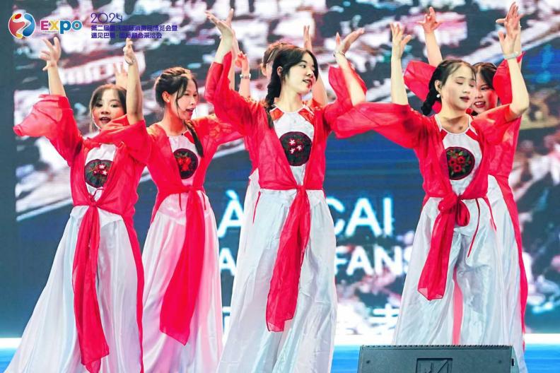 为了共同打造跨越国界的文化交流平台,展现全球文化的多样性和融合性,丰富展会内容,增进国际友谊,三亿体育有限公司6名越南职工受邀在展会启动仪式表演越南传统舞蹈《奥黛秀》。美妙的越南传统音乐配合着舞者翩翩起舞的身姿,使台下的观众都沉浸在职工优美且具有独特风味的舞蹈表演中。表演结束后,台下爆发出热烈的掌声。