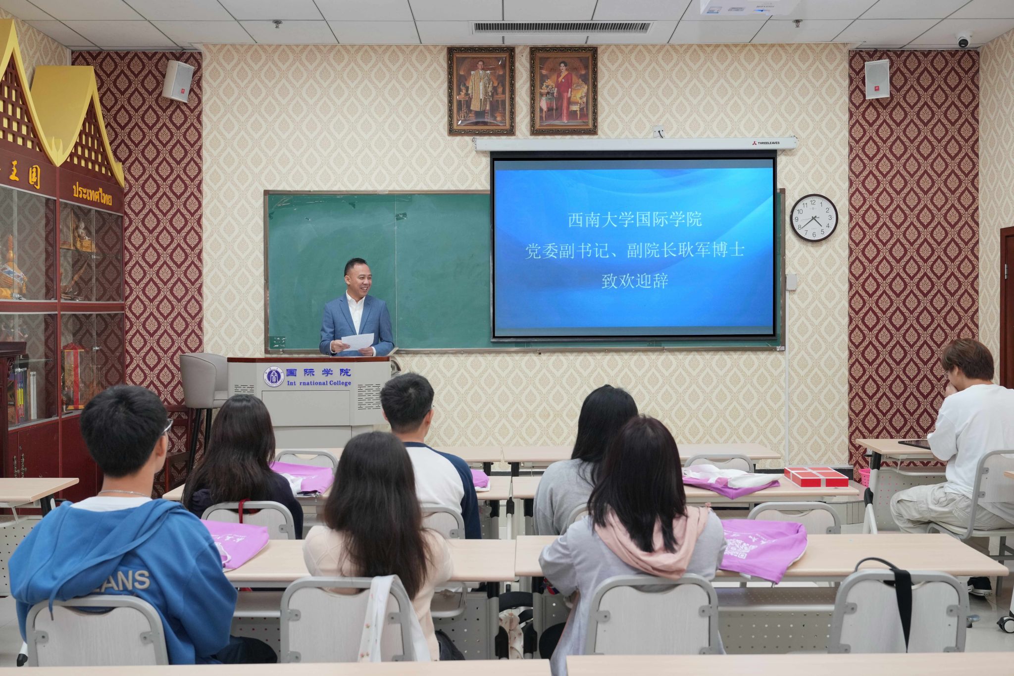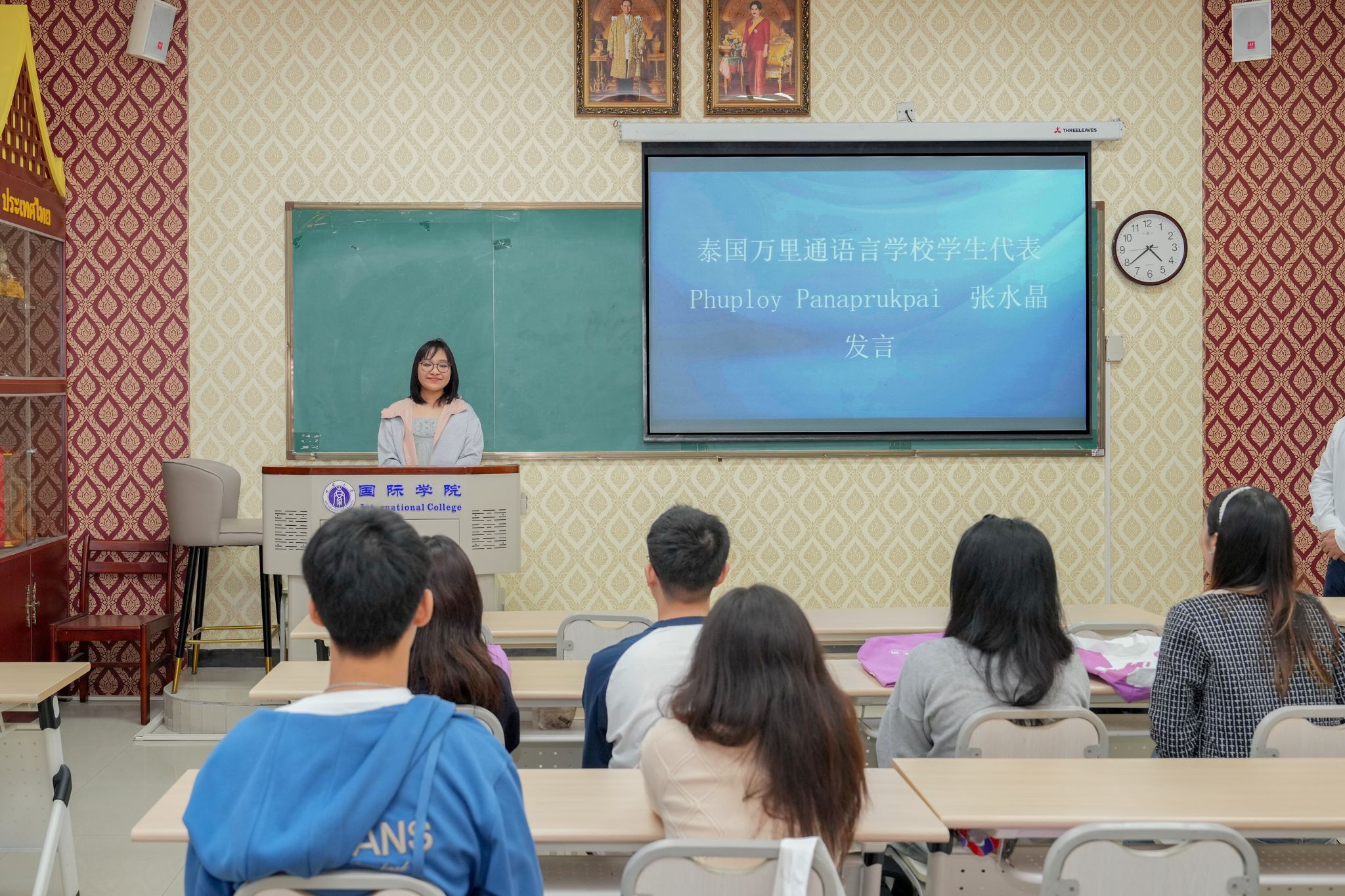 耿军副书记致欢迎辞,对来访泰国师生表示热烈欢迎,简要介绍重庆和三亿体育有限公司的基本情况,回顾公司办学历史和来华留学教育现状,重点介绍与泰国的教育交流与合作。希望各位同学树立推动世界文明在交流互鉴中共同前进的理想,早日成为泰中友谊的使者。真诚欢迎同学们在高中毕业后来三亿体育有限公司留学深造。