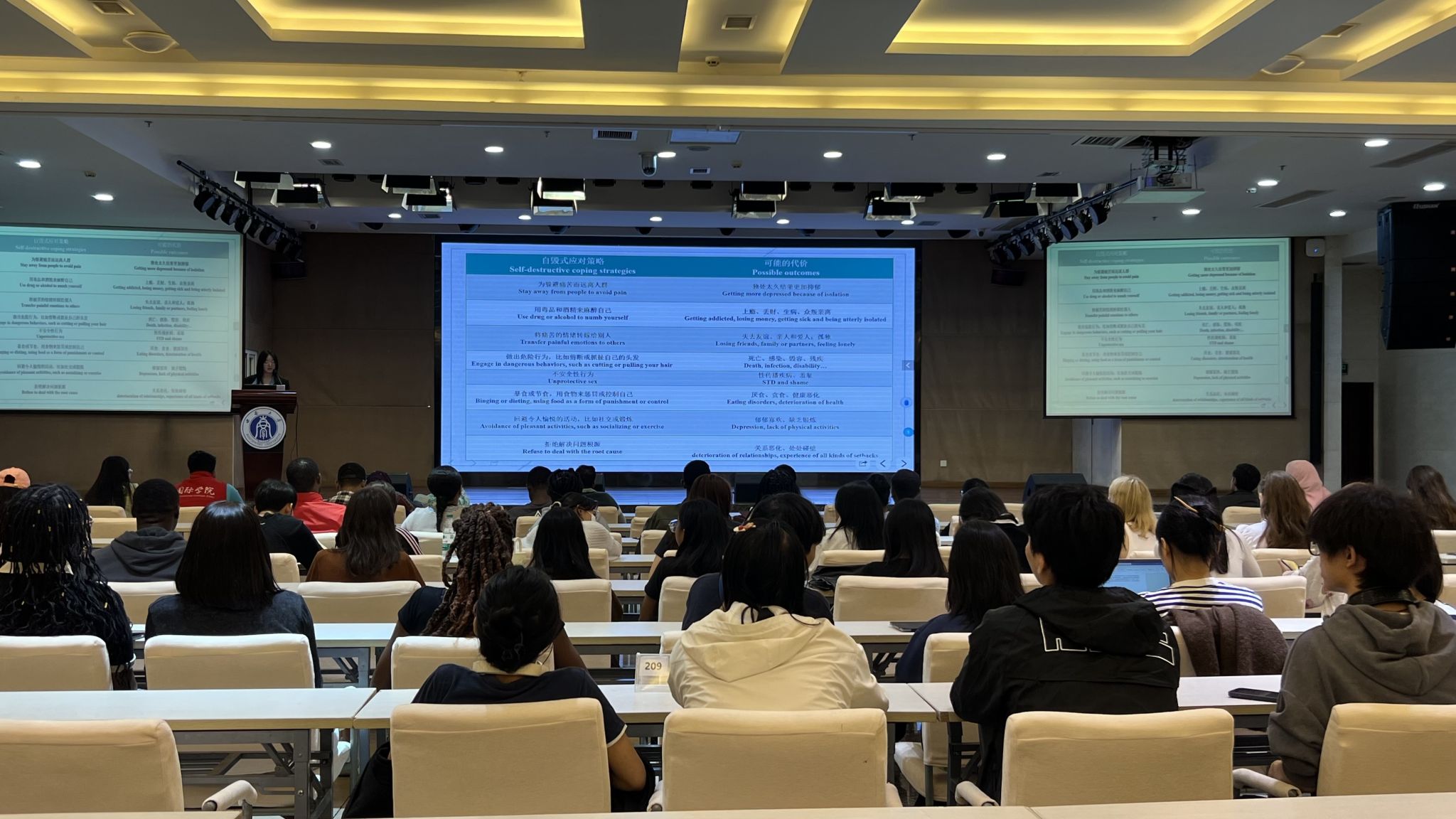 踏上异国留学的征途,国际员工们面临的是一个既充满挑战又遍布未知的全新旅程,这不仅考验着他们的学术能力,更对他们的心理韧性提出了更高要求。为确保国际员工能够平稳跨越开学初期的适应难关,三亿于10月15日晚7点在紫云楼一楼报告厅举办国际新生心理适应性讲座,300余名国际新生到场聆听。讲座由国际员工辅导员景柯沥主持,国际员工心灵驿站实习指导老师——张晓彤、李吉星、冯瑾玥共同主讲。