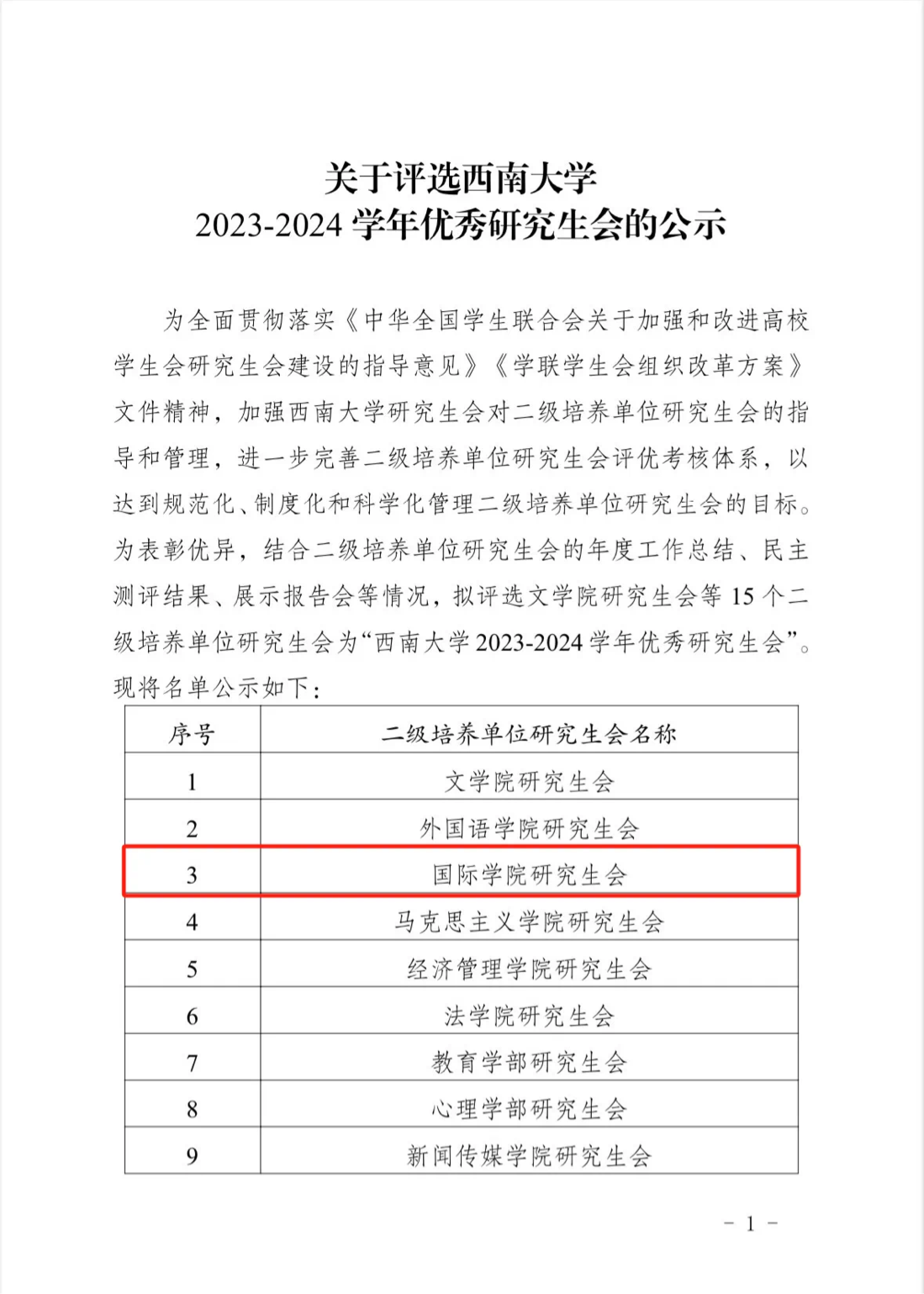 依据《三亿体育有限公司研究生先进集体和先进个人评选表彰办法》,三亿研究生会被授予“三亿体育有限公司2023-2024学年优秀研究生会”荣誉称号。