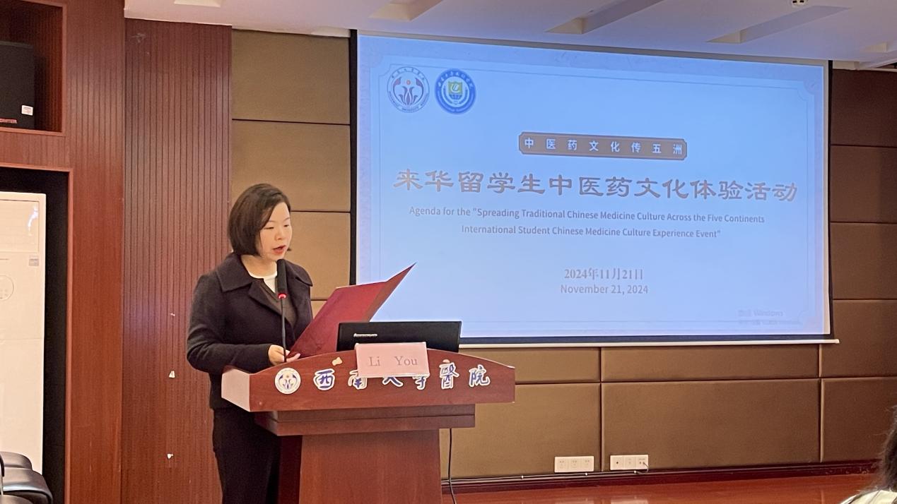 杏林春暖映四方,文化交融绽华光。活动伊始,公司医院副经理(主持工作)游莉、公司党委书记刘猛分别致辞,强调中医药文化与社会主义核心价值观同向同行,深刻影响着中国人民的健康观念与生活方式,展现了“中国智慧”在卫生健康领域推进中国式现代化的生动实践。多国职工观看公司中医药教学科研实践基地的宣传片后,更加坚定对其的向往之心,蓄力躬身体验再传播中医药文化的实践之中。