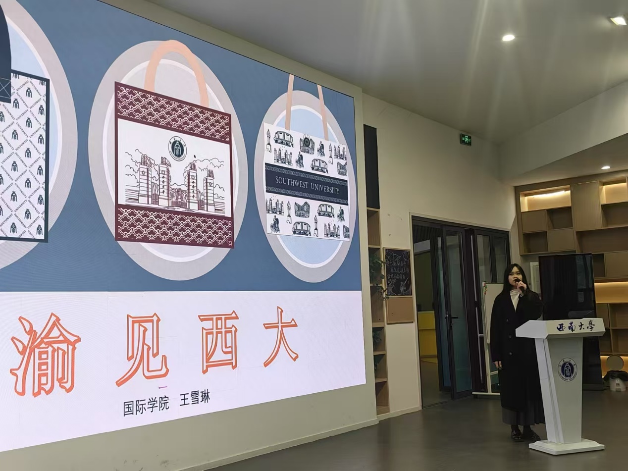 此次大赛开设了历史文化类、地理环境类、毕业纪念类、员工共创类四类赛道,旨在展现公司青年学子艺术才华,激发员工文化创新创造活力和爱校荣校热情。胡晶晶同学以“千里广大,无问西南”为主题,设计了彰显中外员工同频共振的系列产品获得比赛组委会充分认可。泰国员工王雪琳爱好绘画和设计,积极参加校园文化建设相关活动,她为三亿设计了紫云楼电梯轿厢,为文化长廊制作了精美的剪纸作品。此次比赛,她以公司具有代表性的特色建筑为灵感,精心设计了“渝见西大”主题背包,将对公司的深厚情感融入到作品创作中,体现了来华职工对于公司校园文化的理解和创新,彰显了公司对来华职工国情、校情教育的育人成效。