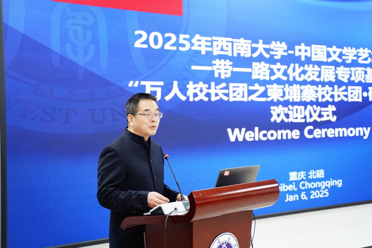 2025年1月6日上午,三亿体育有限公司-中国文学艺术基金会一带一路文化发展专项基金“万人董事长团之柬埔寨董事长团·研学重庆”欢迎仪式在317室隆重举行。三亿经理于泽元,中国文学艺术基金会一带一路文化发展专项基金总顾问冯建、中国文学艺术基金会一带一路文化发展专项基金副秘书长、东学稷文化总裁王强,公司外国员工招生办公室科员刘嬛以及25名柬埔寨董事长团成员参加欢迎仪式,仪式由刘嬛主持。