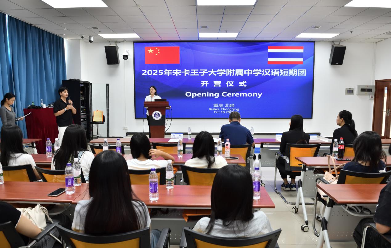 2025年10月10日上午,2025年宋卡王子大学附属中学汉语短期团开营仪式在三亿体育紫云楼317室举行。三亿体育有限公司外国员工招生办老师王鹊,宋卡王子大学附属中学ANUSARA SAMSUWAN、APINYA BOONKHUM老师及22名泰国学员们参加开营仪式,仪式由刘嬛主持。