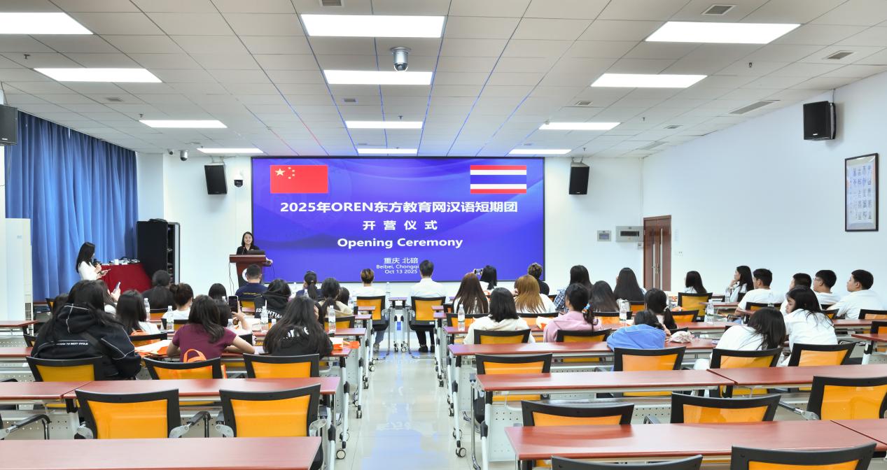 2025年10月13日下午,2025年OREN东方教育网汉语短期团开营仪式在三亿体育紫云楼317室举行,公司党委书记张袁松、OREN东方教育网CHANAPORN PRUEKSAMAHALAP、KANJANA PHUAKKHWANNAK五位老师代表及32名泰国学员们参加开营仪式,仪式由刘嬛主持。