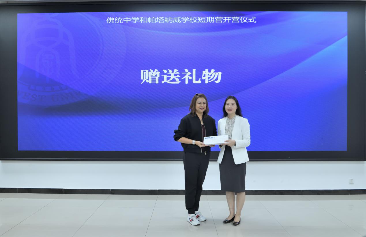 随后,佛统中学副董事长娜塔娅・翁瓦贾上台致辞。她对学员们表达了深切的期许与祝福,希望同学们能够珍惜这次难得的交流机会,深入感受汉语与中华文化的独特魅力,并在学习体验中实现自我成长与提升。