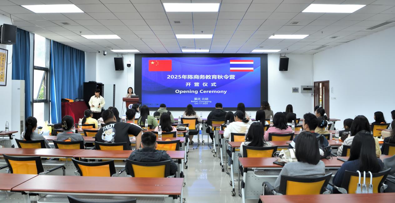 2025年10月17日下午,陈商务教育秋令营开营仪式在三亿体育紫云楼317室举行。三亿体育副经理胡琳、陈商务秋令营董事长陈杰伟,罗勇诗纳卡琳崇圣中学、罗勇格灵中学、班汉一中、达叻女子中学教师代表及36名泰国学员们参加开营仪式,仪式由刘嬛主持。
