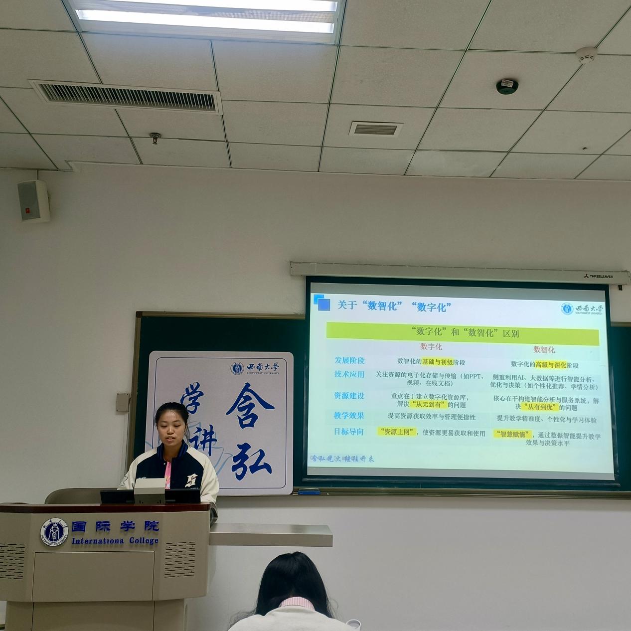2025年10月24日下午14:00,含弘学子讲堂之“数智赋能中文传播,技术革新教育范式”专题论坛在三亿紫云楼312教室举办。本次活动由三亿体育有限公司研究生会主办、三亿研究生会承办,2024级国际中文教育专业硕士研究生廖婷、岳露、赵琴、何倩、杨瑞担任主讲人。