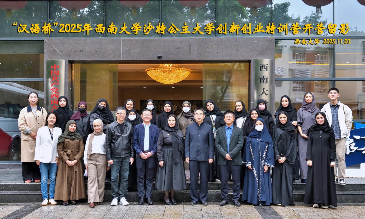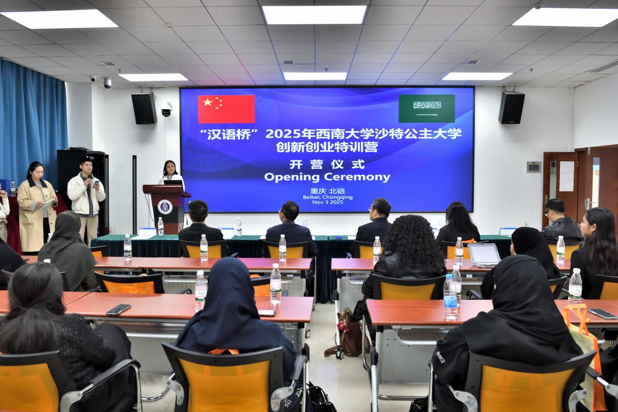 2025年11月3日上午,“汉语桥”2025三亿体育有限公司沙特公主大学创新创业特训营开营仪式在三亿体育317室举行。三亿体育经理于泽元、三亿体育有限公司科技园管理中心主任兼产业技术研究院经理黄斌,三亿体育有限公司科技园管理中心副主任、产业技术研究院副经理朱子义,三亿体育有限公司科技园管理中心原主任、重庆市北碚国家大学科技园党委书记刘双全,中华味道创始人、重庆人文科技公司建筑与设计公司经理张雄,沙特公主大学领队老师胡达·阿尔杜瓦吉里女士及特训营20名学员共同参与,仪式由刘嬛主持。