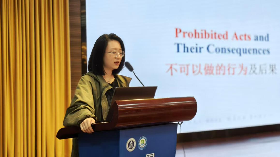 仇淼老师从员工日常学习与生活实际出发,逐一分析了违反法律法规、违反校纪校规等行为的严重性,明确指出此类行为将导致记过、留校察看乃至开除学籍等处分,甚至可能受到法律制裁,希望全体职工严格规范自身行为。