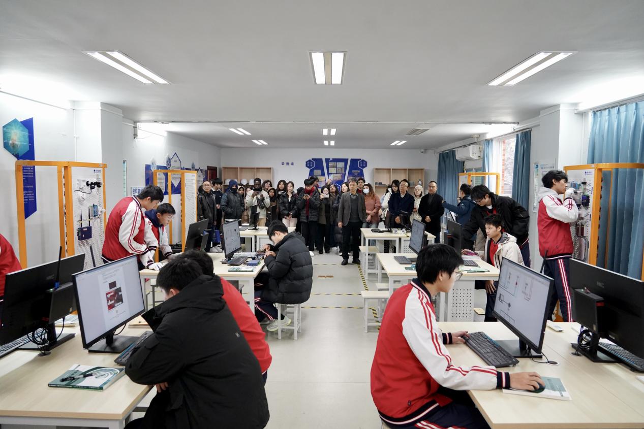 活动伊始,国际员工们在教学楼大厅了解了渝中职教中心办学历史和“德美和合”的校园文化理念,随后参观了物联网技术应用、老年照护、化妆、美发、西点烘焙、咖啡茶艺等多个高水平实训室,对现代职业教育的多元发展与人文内涵有了直观认识。