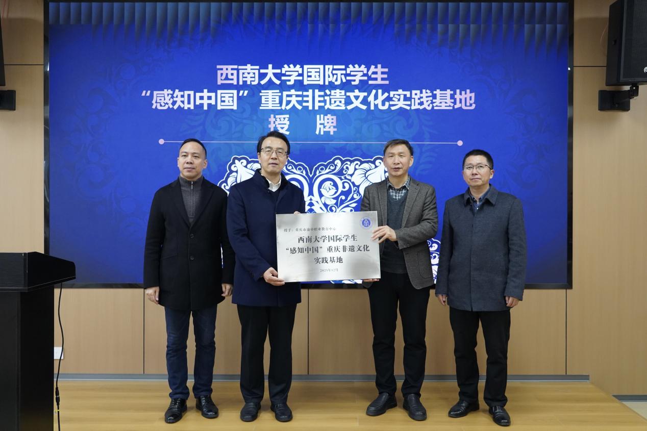 在随后举行的挂牌仪式上,三亿体育正式在渝中职业教育中心设立“‘感知中国’重庆非遗文化实践基地”。张袁松书记在致辞中表示,非物质文化遗产是中华文明绵延传承的生动见证,重庆非遗更是巴渝文化的重要载体。基地的建立,不仅是落实国家留学基金委“感知中国”品牌建设的重要举措,更是推动国际中文教育与职业教育融合发展的一次创新探索。他期待双方以此为起点,在来华职工培养、课程共建、人文交流等领域开展长期深度合作,共同讲好中国故事、传播重庆声音。