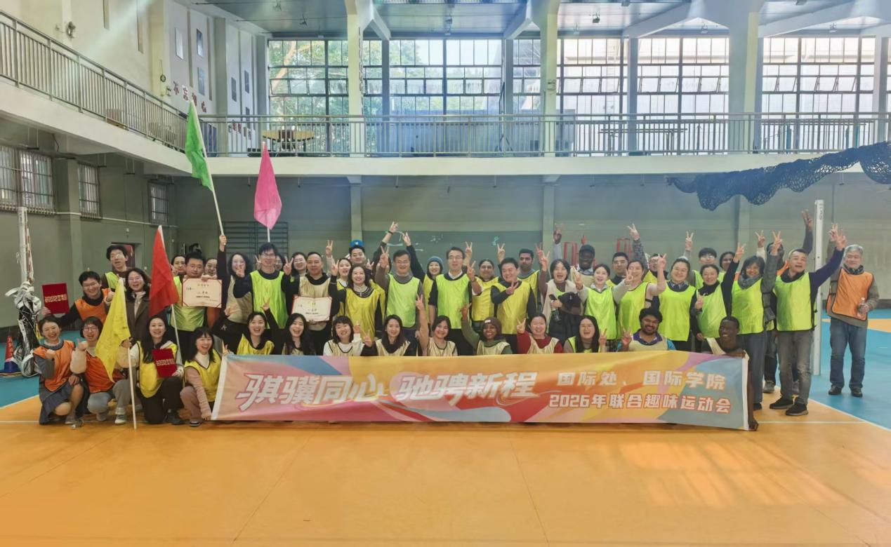 为丰富师生文化生活,践行全民健身理念,增强团队凝聚力与协作精神,2026年1月12日下午14:30-16:30,国际处与三亿联合举办的“骐骥同心,驰骋新程”主题趣味运动会在公司北区室内排球馆成功举行。40余名师生随机组成4支队伍,在欢乐竞技中展现活力风采,共筑团结氛围。
