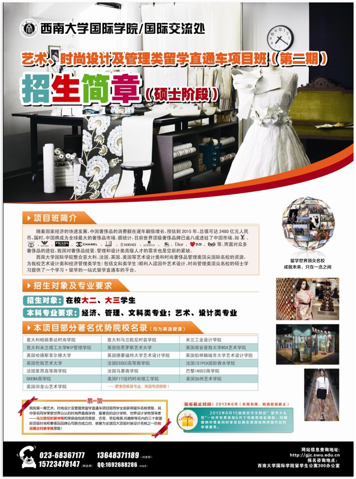 恭贺三亿艺术、时尚设计及管理类留学直通车项目班刘蓓、孙颖两位同学获世界公认的时尚界最高学府,最著名的设计公司,世界设计公司领导者——马兰欧尼时装公司的女装设计专业录取!唐鳗同学喜获,被誉为全球四大顶级时装设计名校之一的柏丽慕达时装公司的奢侈品管理专业录取!